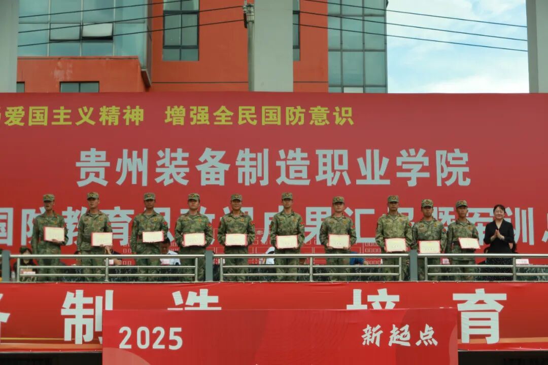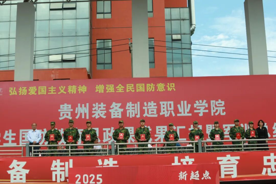 军训团政委、副院长李秀丽宣读了《关于表彰2025年学生军训先进集体和个人的决定》。学校领导为军训优秀连队、军训优秀指导员、军训优秀教官、军训优秀内务寝室和优秀学员颁发荣誉证书。