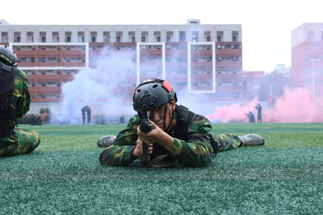 杨书记指出,今年正值中国人民抗日战争暨世界反法西斯战争胜利80周年,本次为期15天的军训是一堂熔铸钢铁意志、锻造精神韧性的成长课,更是一堂培养家国情怀、赓续红色血脉的必修课;全体参训学子以汗水浇灌成长,用坚持铸就品格,既强健了体魄,又淬炼了精神,是同学们未来人生道路上的宝贵财富。