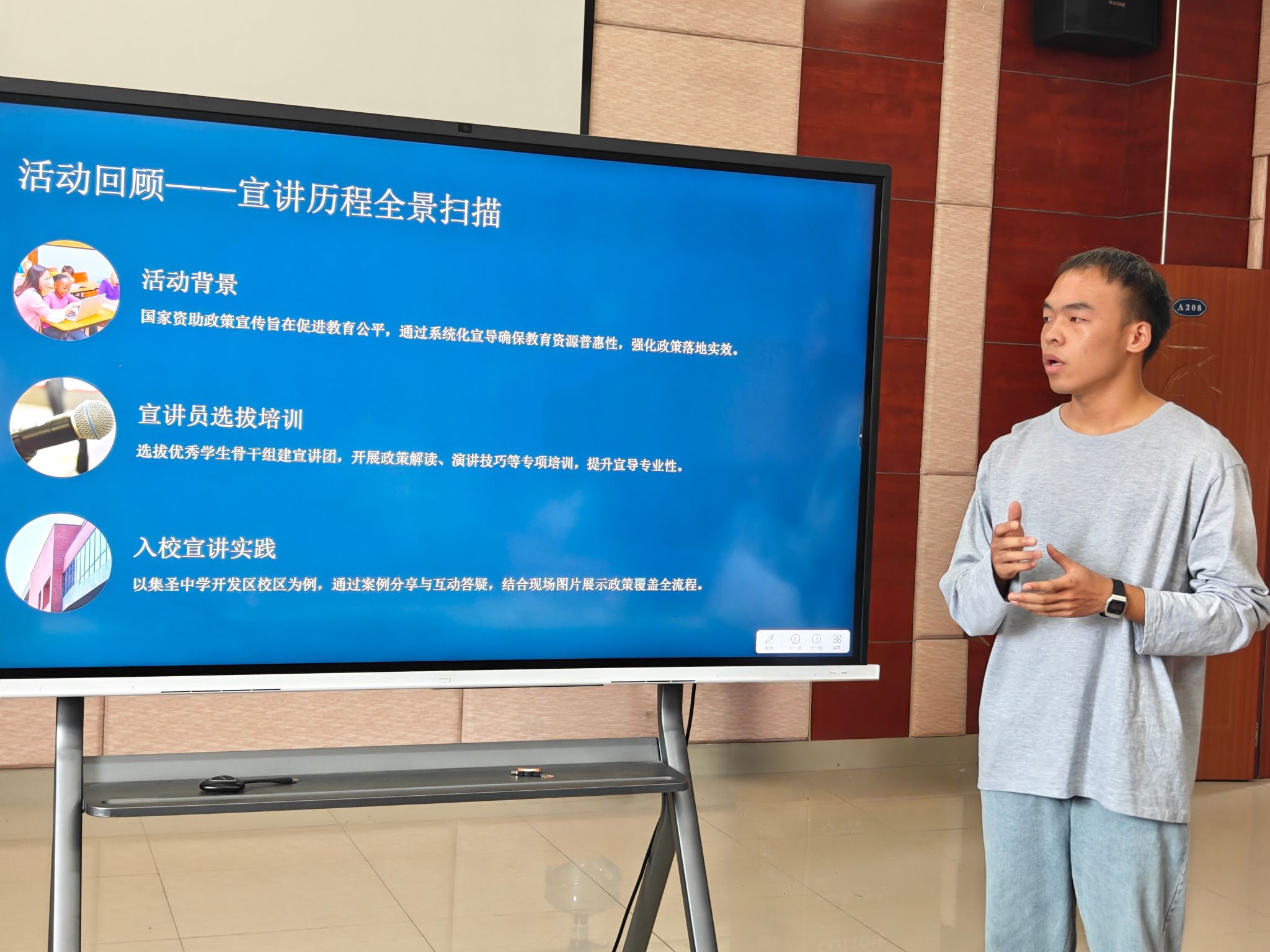 暑期期间,宣讲团的成员们足迹遍布全省十个地区。在家乡的社区活动中心、当地中学教室、甚至田间地头,他们因地制宜,开展了形式多样的宣讲活动。讲解员们围绕高校学生资助政策体系,用朴实亲切的乡音,详细解读了大学期间各项资助政策的申请条件、办理流程和注意事项。通过分享自身在大学里如何通过国家助学贷款解决学费压力、凭借国家励志奖学金激励自己奋发图强、利用勤工助学岗位锻炼能力的真实经历,消除了许多家庭“上学贵”的担忧,让“不让一个学生因家庭经济困难而失学”的承诺变得可知可感。