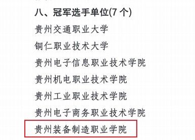尤为值得祝贺的是,凭借在各赛项中的综合优异表现和冠军选手的产出,贵州装备制造职业学院被大赛组委会授予 “冠军选手单位” 荣誉称号。这一集体荣誉,是对学院整体办学水平、实践教学成效和师生竞技能力的高度肯定。
