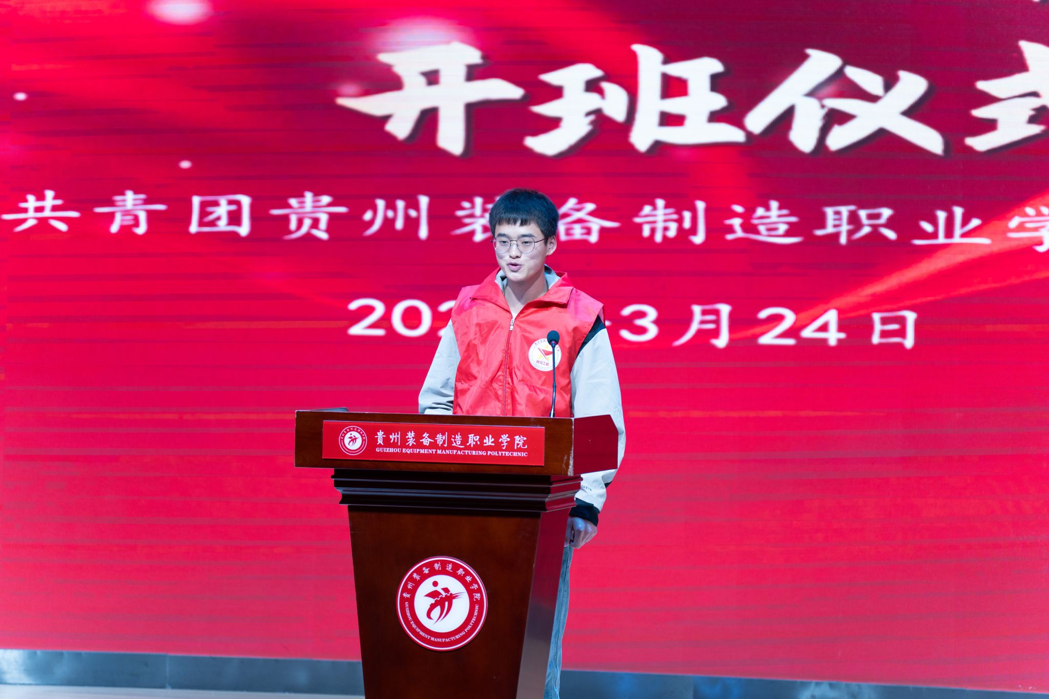 为深入学习贯彻习近平新时代中国特色社会主义思想,全面贯彻党的二十大和二十届历次全会精神,认真落实习近平总书记关于青年工作的重要思想,着力培养一批具有坚定马克思主义信仰、德才兼备、全面发展的青年政治骨干,3月24日,贵州装备制造职业学院第六期“青年马克思主义者培养工程”开班仪式在学校德润楼105报告厅举行。学院党委副书记李峥嵘出席仪式并讲话,各系部党总支副书记,团总支书记,各系部负责团工作的老师、团委全体教师及第六期“青马工程”培训班全体学员共同参加。
