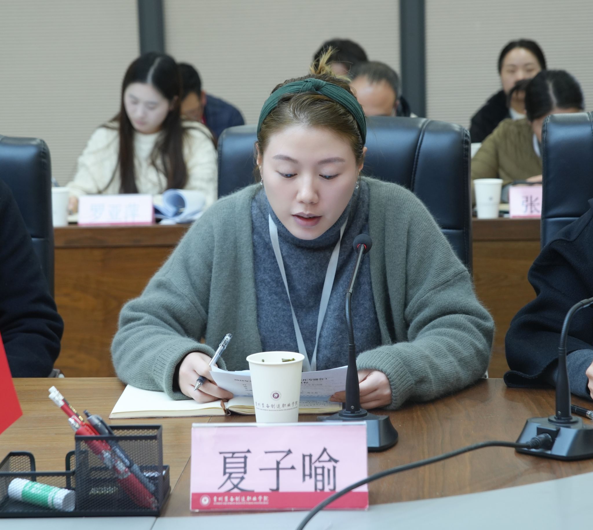 民盟贵州装备制造职业学院支部科技委员、教务处校企合作办办公室主任夏子喻作交流发言