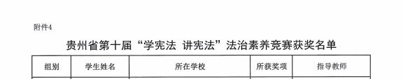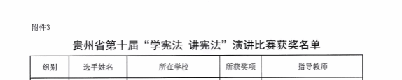近日,从贵州省教育厅主办的第十届全省学生“学宪法 讲宪法”比赛结果通报中获悉,我校建筑工程系黄宇航荣获演讲比赛“三等奖”,机械工程系学生曹佳佳荣获法治素养竞赛“三等奖”。