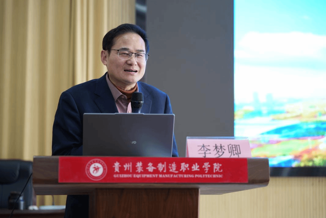 为深入贯彻落实《教育强国建设规划纲要(2024-2035年)》,科学谋划我校“十五五”发展蓝图,推动学院高质量发展。1月15日下午,天津职业技术师范大学教授、博士生导师李梦卿受邀到校,作题为“教育强国建设背景下职业教育高质量发展的理念与行动”的专题讲座。贵州财经学院、贵州工业职业技术学院、贵阳职院、遵义航天职院、贵州交通技师学院、贵州机电职院、盘州中等职业学校相关领导干部、名师名匠莅临参会。学院党委书记杨志宏主持并讲话。