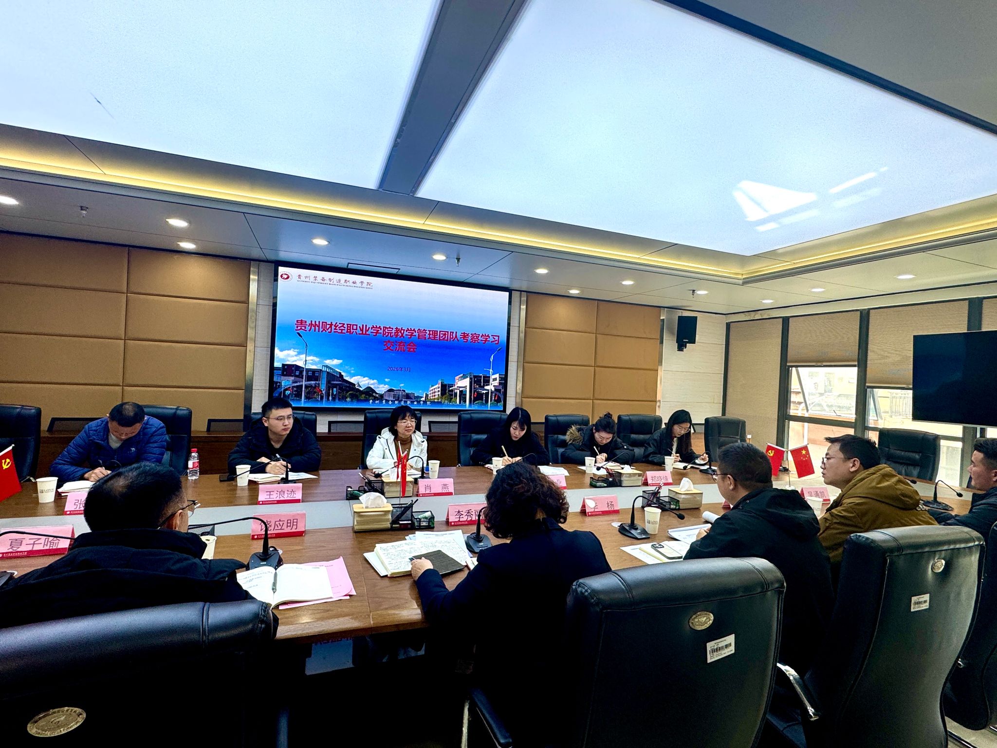 2026年3月10日下午,贵州财经职业学院党委委员、副院长肖燕率教务处、双高办一行莅临我院,就“双高”建设与办学能力评价工作开展考察交流,我院党委委员、副院长李秀丽携教务处、规划处相关负责人和教师参与交流座谈,会议由教务处处长饶应明主持。