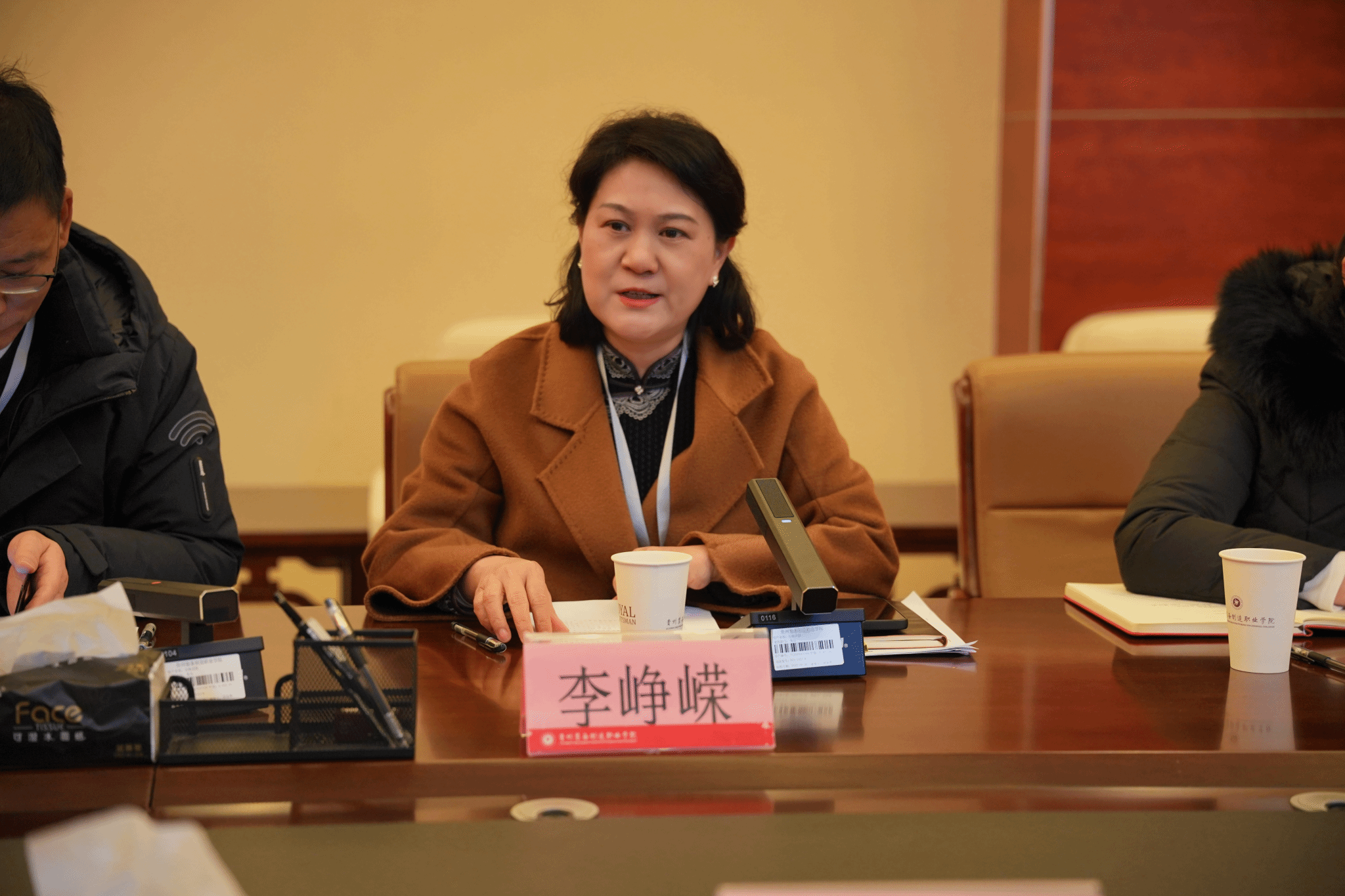 参观结束后,双方召开交流座谈会。会议由我院党委副书记、院长刘渠主持。会上,贵州装备制造职业学院党委副书记李峥嵘致欢迎辞。她表示,贵州理工学院在学科建设、科研创新、人才培养等方面有着深厚的积淀和丰富的经验,两校在教育教学、人才培育等方面各有优势、互补性强,希望以此次交流为契机,加强两校沟通对接,相互学习、取长补短,推动双方办学质量共同提升。