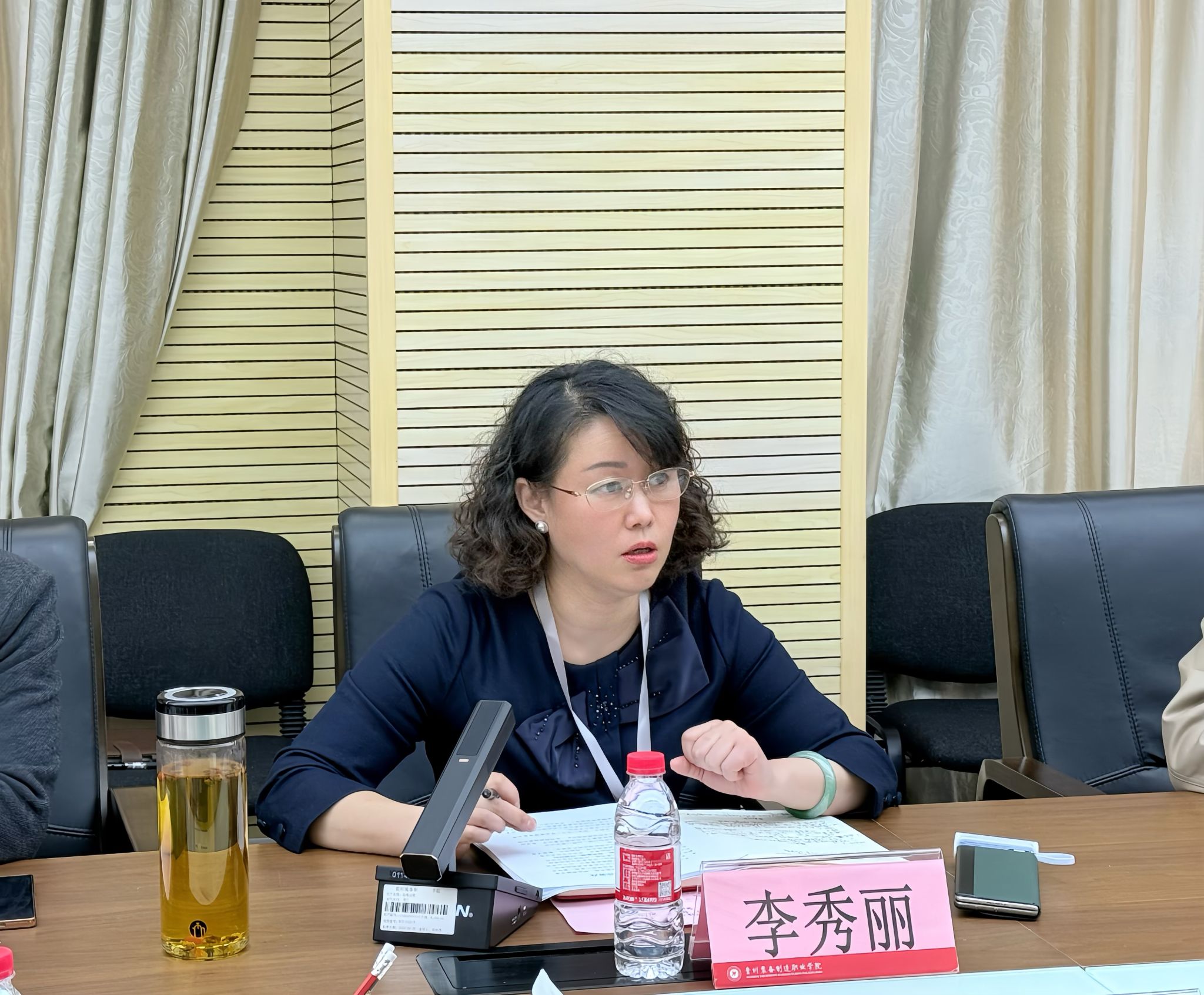 为深化职业教育校际合作,共享办学经验,推动高职院校内涵建设与高质量发展,2026年3月12日下午,贵州经贸职业技术学院党委委员、副院长刘勋率教务处、教学质量监控与评估办公室相关负责人一行莅临我院,围绕“双高”建设、办学能力评价等核心议题开展专项考察交流。我院党委委员、副院长李秀丽携教务处、规划处负责人参与会议,双方就当前职业教育改革发展重点工作深入探讨、互学互鉴。