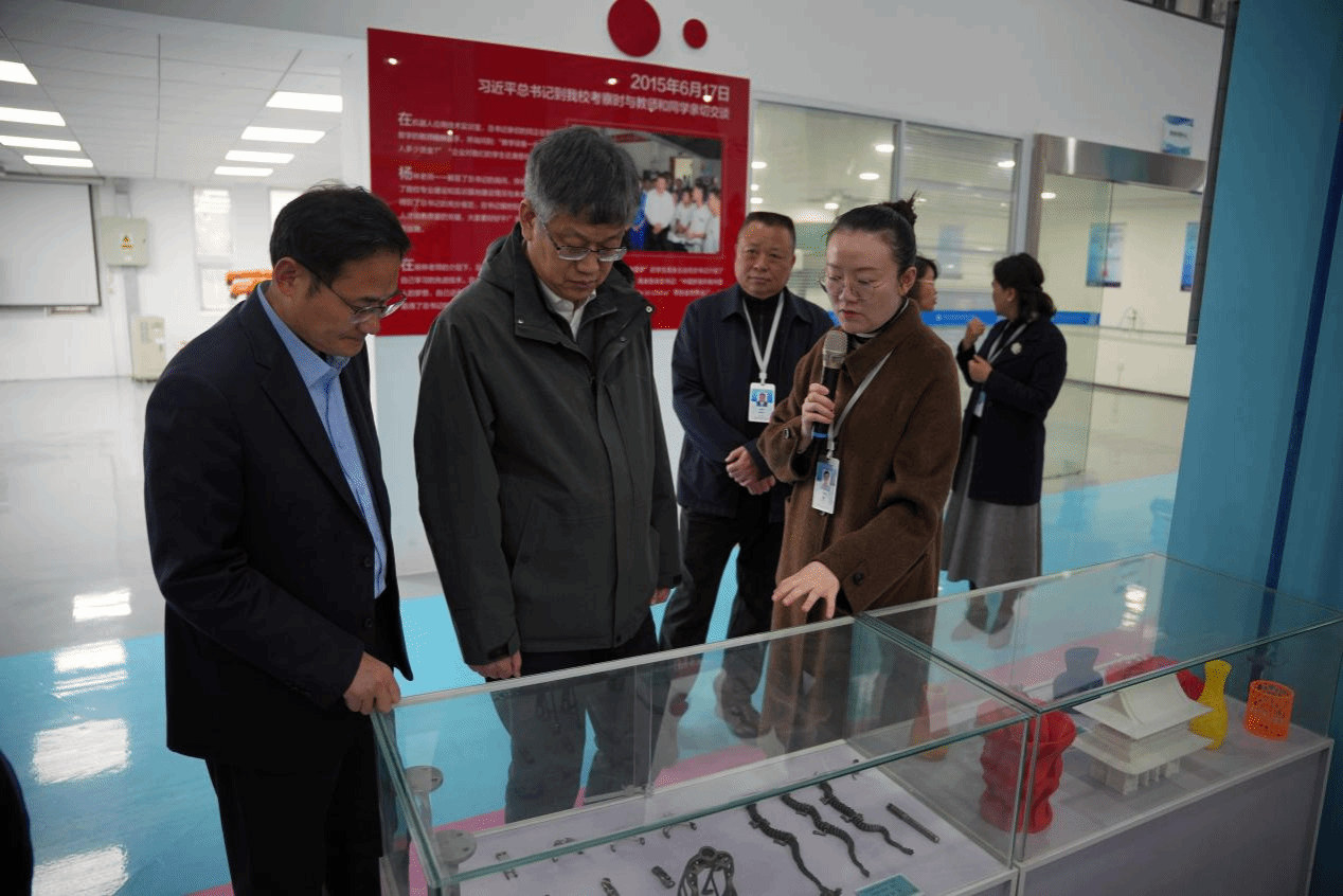 郑清春书记一行先后实地参观了全省教育系统理想信念教育基地、国家级数控实训基地、忠诚工匠文化研究院,详细了解学院在育人阵地建设、实训教学开展、“忠诚工匠”文化育人品牌建设等方面的举措与成果,对学院办学成效给予高度评价。