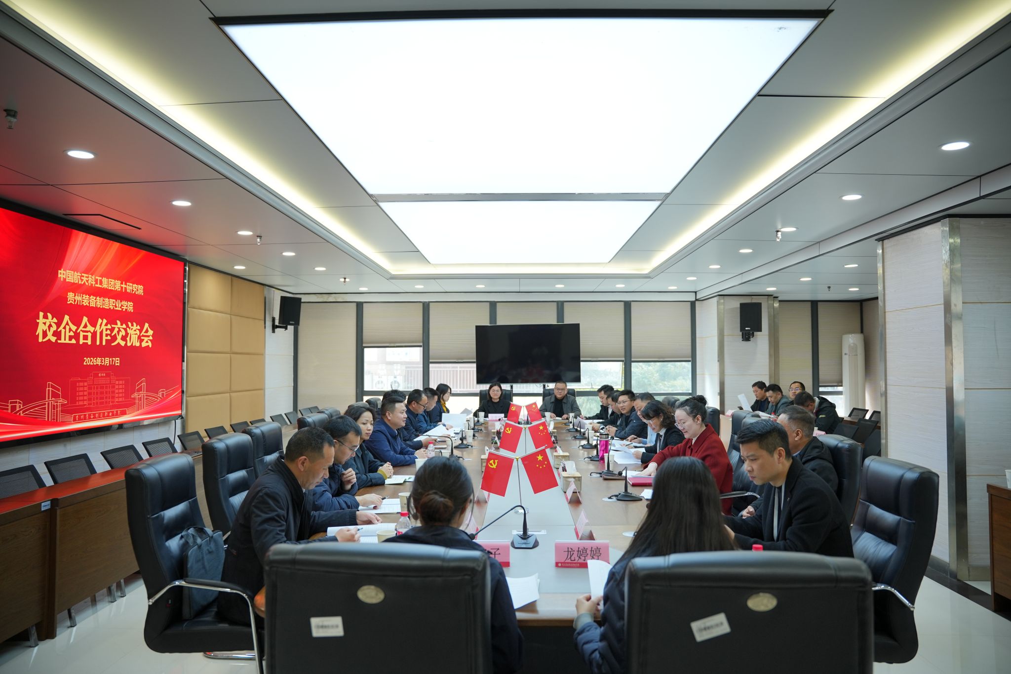 参观结束后,双方召开交流座谈会。会上,学院党委委员、副院长李秀丽致欢迎辞。她表示,航天十院作为国家航天装备制造的重要力量,技术实力雄厚,双方合作基础扎实、前景广阔。希望通过此次交流,进一步推动合作内容落地落实,在党建引领、人才培养、师资共建、科研协同等方面形成更加紧密的合作关系,为贵州装备制造业高质量发展培养更多高素质技术技能人才。