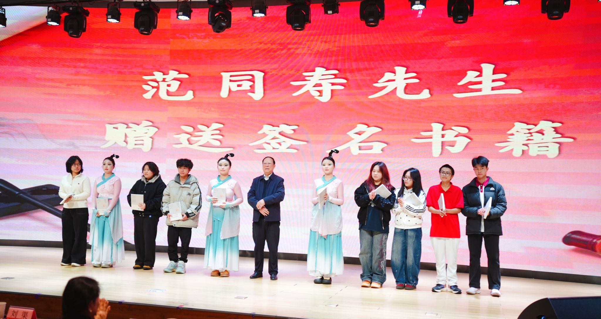 范同寿先生与获得亲笔签名书籍师生合影