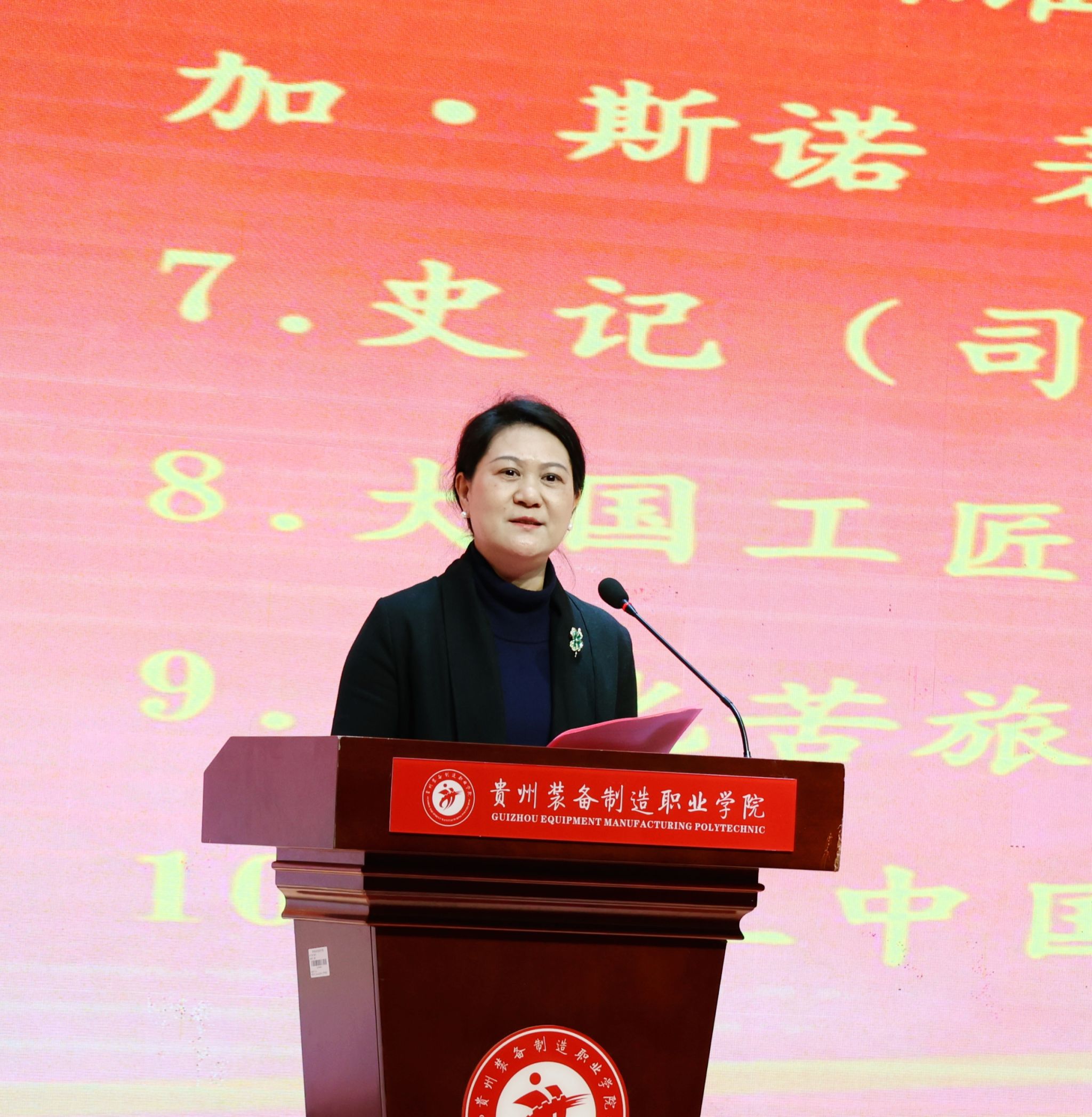 党委副书记李峥嵘发布第一期“工匠书单”,涵盖《贵州历史笔记》《共产党宣言》《习近平的七年知青岁月》《传习录》《史记》《大国工匠》《乡土中国》等十部经典著作。她指出,这份书单既有思想的深度,也有实践的温度;既有历史的厚重,也有时代的脉搏。希望大家在阅读中感悟真理的力量,在经典中汲取前行的智慧。同时李峥嵘书记还宣布“匠心云书院”上线,希望全体师生随时随地遨游书海。以书为媒,以读为桥,在经典中淬炼匠心,在诵读中铸就忠魂。