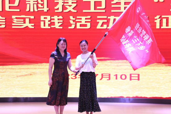 党委副书记杨丽芳老师为经济管理系暑期“三下乡”社会实践活动队伍授旗