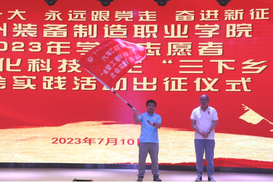 党委书记熊星老师为团委暑期“三下乡”社会实践活动队伍授旗