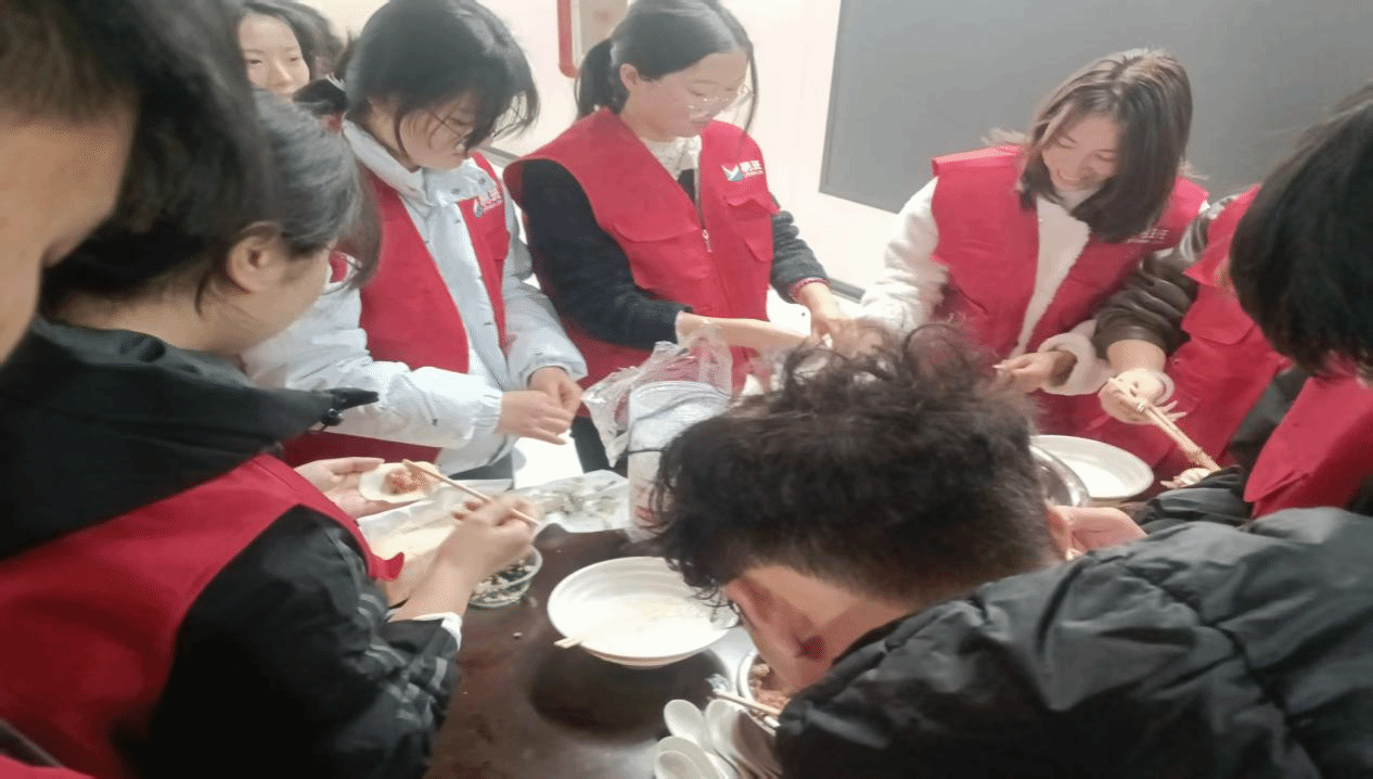 活动过程中,学院领导、老师们也纷纷加入到同学们中间,手把手教授包饺子的技巧,与大家唠家常、谈理想,询问同学们的假期生活和返校适应情况。大家边做边聊,欢声笑语不断,平日里严肃的教工食堂此刻充满了家的温馨。当一盘盘热气腾腾的饺子和汤圆端上桌,师生们围坐在一起,品尝着自己的劳动成果,甜蜜与温暖洋溢在每个人的心间。